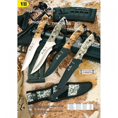 Manufacturas Muela fabricante de cuchillos y navajas artesanales presenta, dentro de la familia de CUCHILLOS DE CAZA Y DEPORTIVOS, el cuchillo táctico TYPHOON-DES.