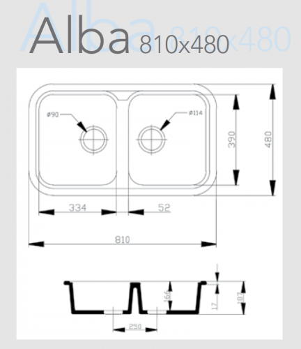 Medida de encastre 790x465 mm Radio curvatura esquinas 125 mm Válvula cestilla ø 113 mm