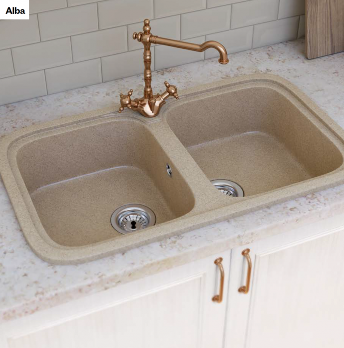 Fregadero 2 cubetas. Instalación aconsejable sobre encimera. Apto para mueble de 80 cm.
