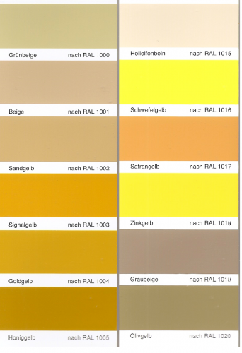 Se puede elegir entre 32 colores de la carta de colores Syan, clasificados en :