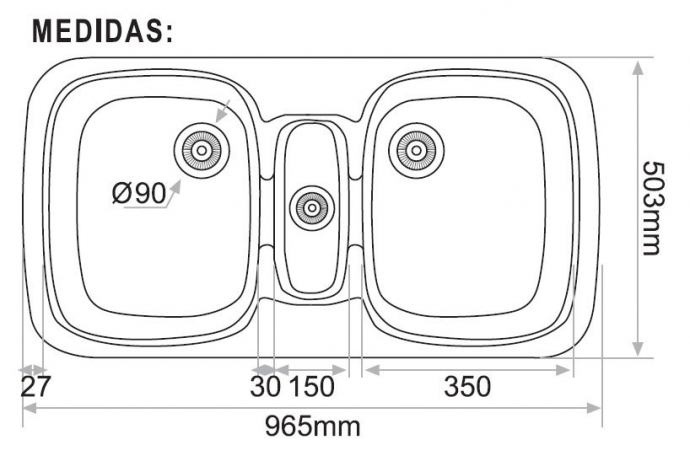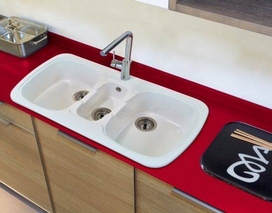 El fregadero cirene es un fregadero de dos cubeta y 1/2 media cubeta para montaje sobre encimera . Se puede montar en muebles, con una anchura desde 100 cm . La profundidad del fregadero es de 180 mm.