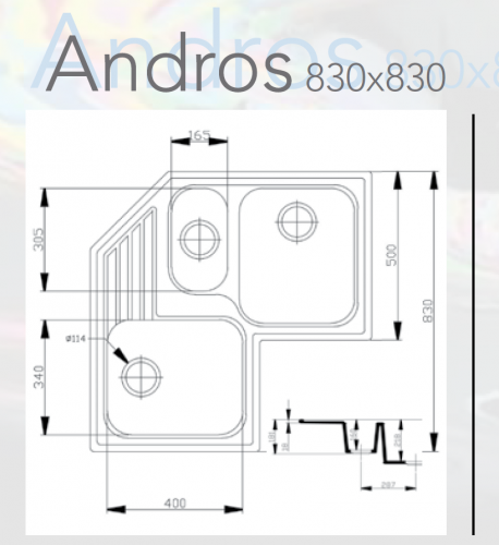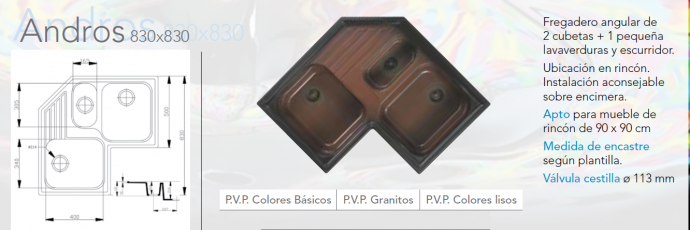 FREGADERO ANDROS 83X83 ANGULAR DE URDAPLAST