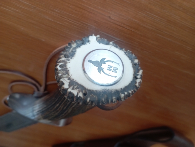 Macheta con puño de asta de ciervo y defensa de acero inoxidable.
