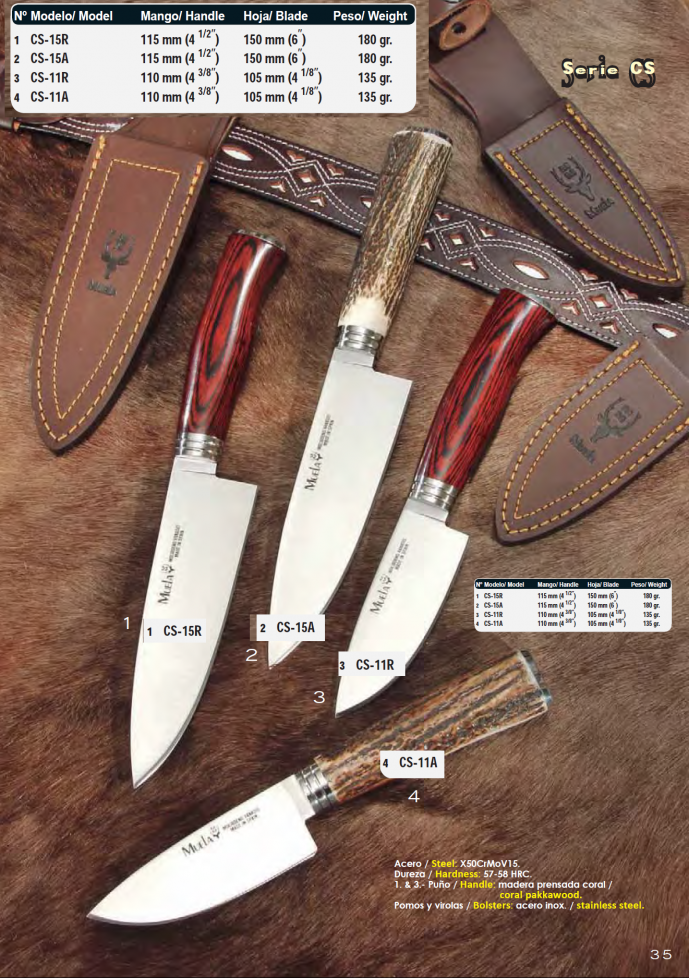 Muela les presenta los nuevos cuchillos de la serie CS en sus dos versiones, madera prensada coral y asta de ciervo.