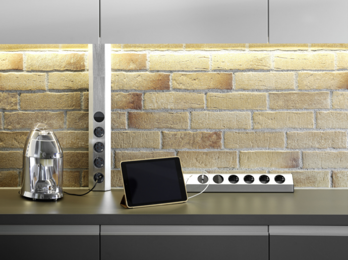 Energy Box Doble Versión es ideal para montaje en pared o en esquinas de 90o y una solución eficiente para una conexión de corriente de fácil acceso en la cocina. Cuenta con 3 vesriones: 4 enchufes, 4 enchufes + interruptor y 4 enchufes + interruptor + 2 USB cargadores. En las 2 versiones que llevan interruptor sirve para abrir o cerrar el paso de corriente a los enchufes y USB. Fabricada en acero inoxidable ofrece un diseño atemporal por lo que resulta adecuada para todas las cocinas.