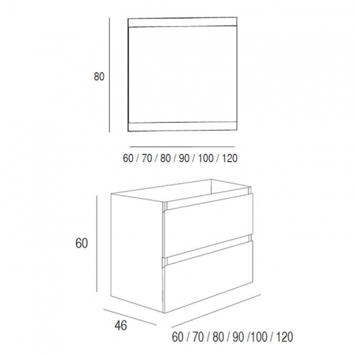 Disponible en medidas de 60-70-80- 90-100- 120cm de ancho, 60cm de Alto , y 46cm de Profundiad.