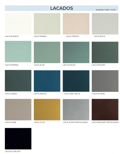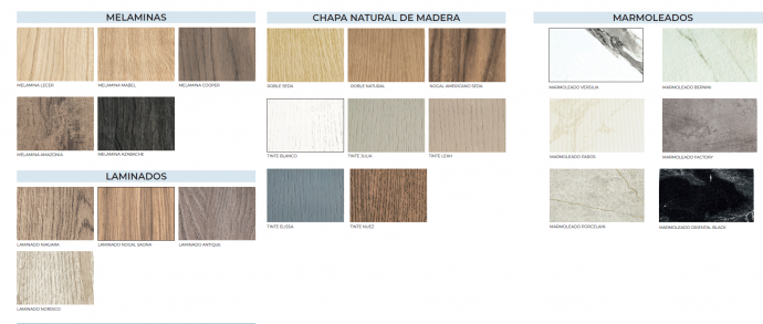 Se puede elegir cualquier color de la carta de colores Campoaras, ( con terminación,melamina, laminado, en lacado brillo o mate ,Chapa natural y Chapa Tinte) incluso se puede combinar los colores, ademas si no encuentra el color ,se puede fabricar cualquier color de la Carta Ral