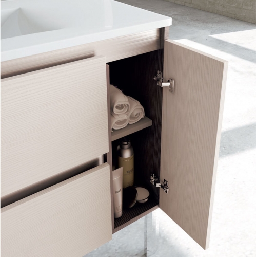 Dos cajones con cierre progresivo y una puerta con bisagras metalicas. para la medida de 80cm