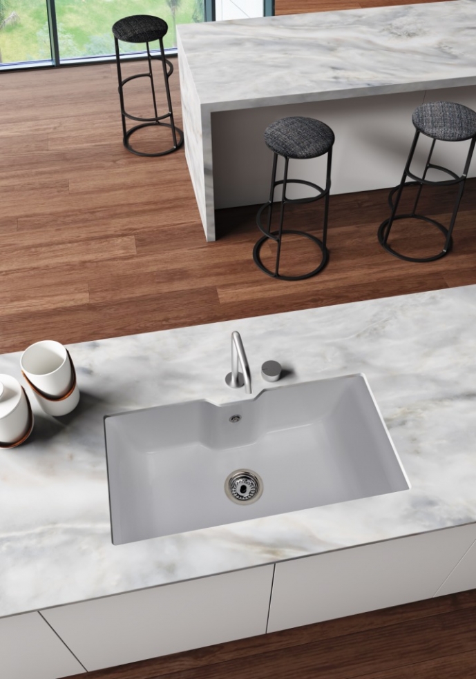 Los fregaderos SYAN, AQUASILK están fabricados con resinas isoflálicas endurecidas con micro-esferas de vidrio y cuarzos y marmolinas, ofreciendo una especial resistencia al agua y al envejecimiento, abrasión y calor, y otorgandole propiedades Antibacterias