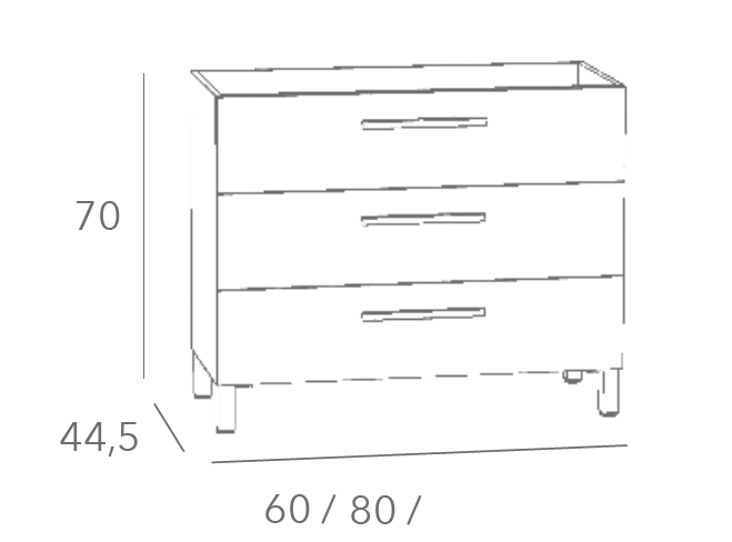 Tres cajones con cierre progresivo, con gias Hettic