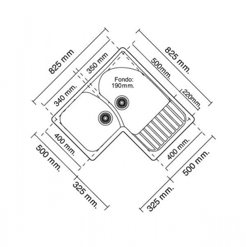 Medidas : 825x500x19 mm. Para fregader de 90x90cm