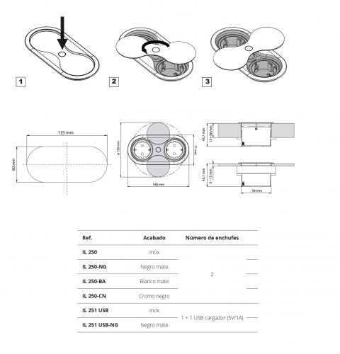 Nuevo Enchufe empotrable en encimera, fabricado por Cucine Oggi, fabrica de reconocido prestigio en la fabricación decomplementos de cocina.