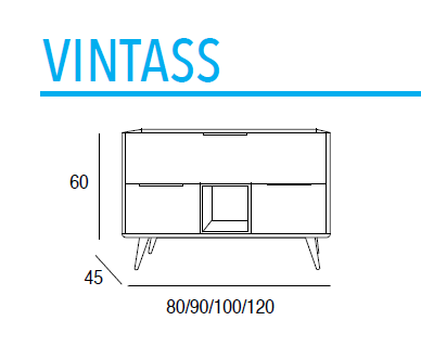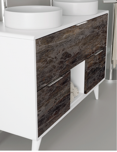 Mueble fabricado en DMD, se puede instalar suspendido o con patas vintass