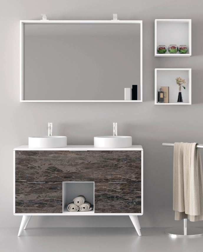 Mueble de baño con encimera cerámica , fabricado por CampoAras, fabrica española situada en Córdoba,