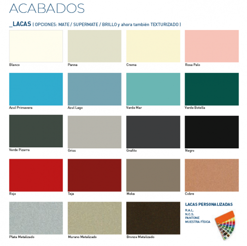 Se puede elegir cualquier color de la carta de colores Campoaras, incluso combinarlos, el precio final es del acabado con mayor precio