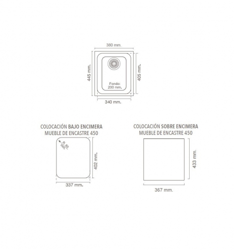 Bajo encimera: 337x402mm