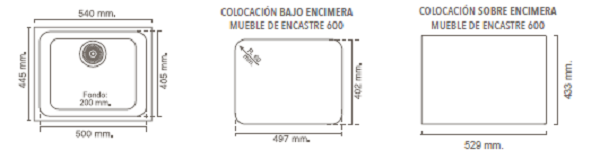 Diseñado para instalar sobre encimera o bajo encimera, de 1 cubeta