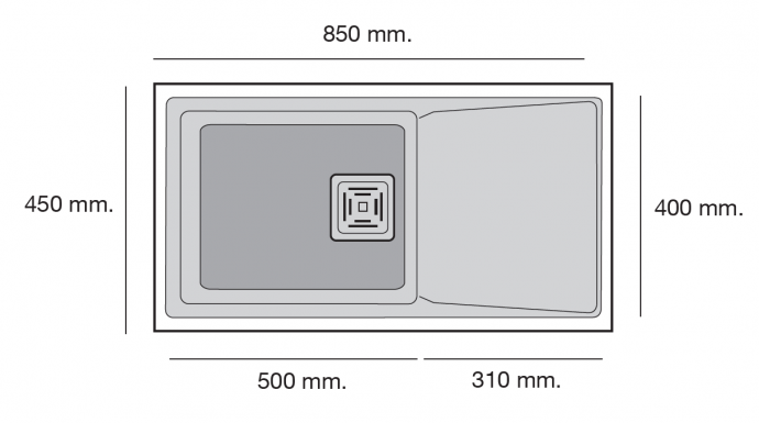 Diseñado para instalar sobre encimera o bajo encimera, de1 cubeta con escurridor