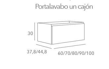 1 Portalavabo de 1 cajon de 60cm o de 70cm con cierre amortiguado y extraccion total con estructura metálica.