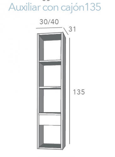 Estantería suspendida, de 30cm o 40cm de ancho, 31cm de fondo, y 135cm de Alto