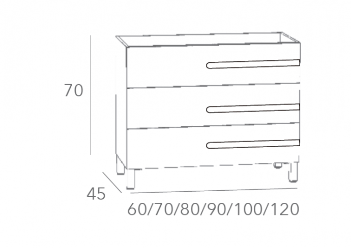Tres cajones con estructura metálica, cierre amortiguado y extracción total.