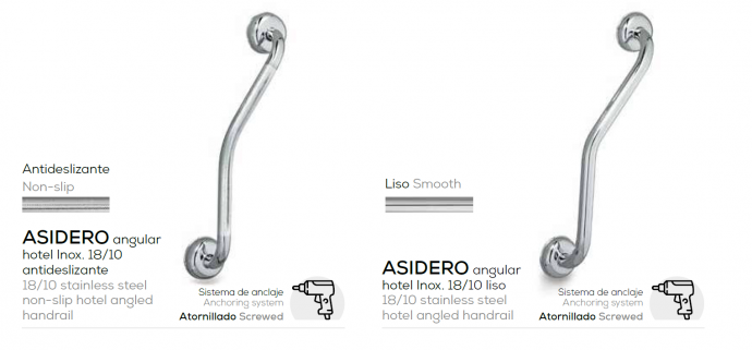 Asidero, agarrador, ergonómico para baño o ducha, acabado curvo, en acero cromado ,