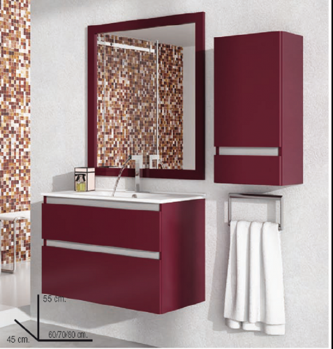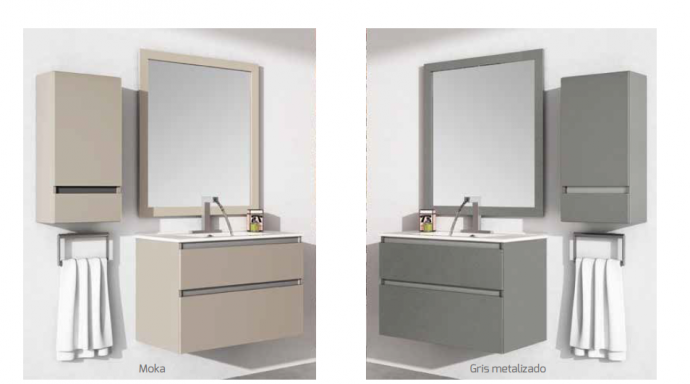 Conjunto mueble de alta Gama mas lavabo y espejo modelo Paula Malta. Fabricado por Muebles Maestre, fabrica española situada en Ciudad Real,