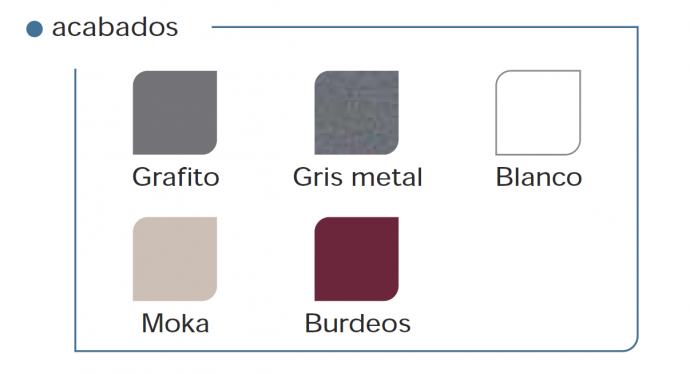 Color en Color Blanco, Burdeos, Grafito , Moka, Gris Metal, acabado Brillo