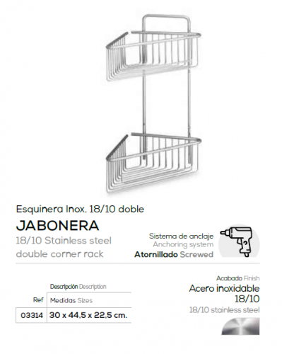 - Fabricado en acero inoxidable 18/10 “AISI 304” norma DIN 1.4301. Tubo diámetro 30 mm, espesor 1,5 mm. Diámetro plafón amarre pared 70 mm.