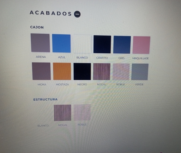 COLORES ESTRUCTURA NOGAL, ROBLE, BLANCO.