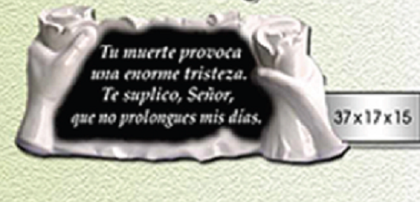 Pergamino de Cerámica, con los bordes en relieve , para crear el mejor recuerdo de tu ser querido, realizado con los últimos sistemas de impresión y modulación, resistentes a las inclemencias del tiempo, consiguiendo así que perdure como nuevo durante muchos años.