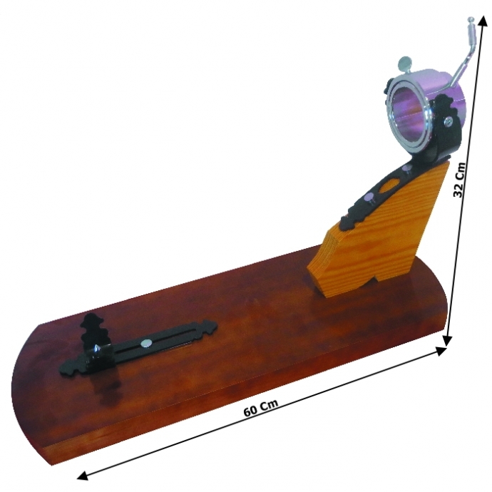 Soporte jamonero giratorio lacado en color oscuro con la base redonda en ambos extremos. El soporte de madera va