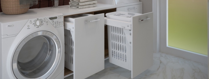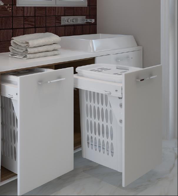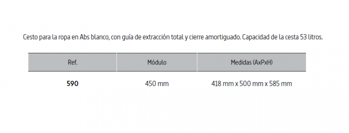 Cesto para la ropa en Abs blanco 590, con guía de extracción total y cierre