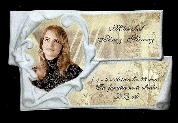 Pergamino de Cerámica, con los bordes en relieve , para crear el mejor recuerdo de tu ser querido, realizado con los últimos sistemas de impresión y modulación, resistentes a las inclemencias del tiempo, consiguiendo así que perdure como nuevo durante muchos años.