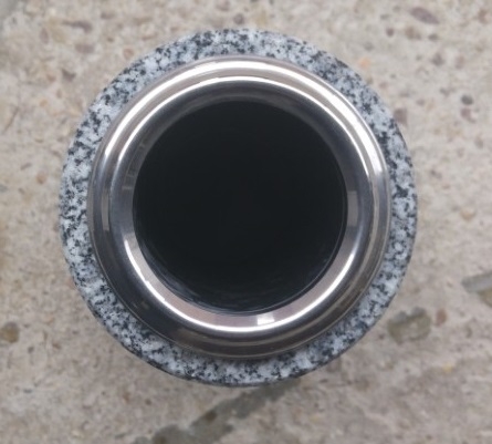 Jarrón o búcaro de granito, material muy duro y resistente , para panteón, con forma de cuello.