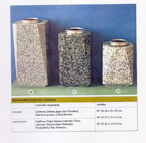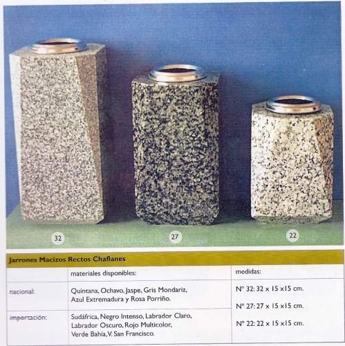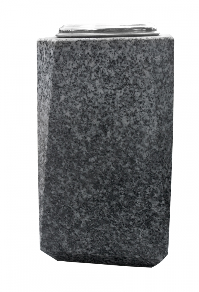 Jarrón para panteón, Macizo con corte recto a Chaflán fabricado en granito, material que le proporciona una gran durabilidad y resistencia.