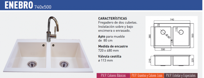 Estos Fregaderos están fabricados a base de Resinas sintéticas y reforzadas con minerales como el cuarzo y granito, utilizando esmaltes como el GELCOAT, que le aporta resistencia a determinados agentes de uso cotidiano en el hogar, consiguiendo así un producto, de gran resistencia al rayado , a los golpes y a las mancha.