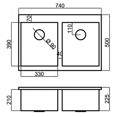Fregadero de dos cubetas.