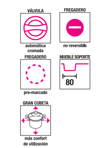 Fregadero compuesto por 1 gran Cubeta. Dimensiones ideales para lavar las bandejas de los hornos y los platos voluminosos.