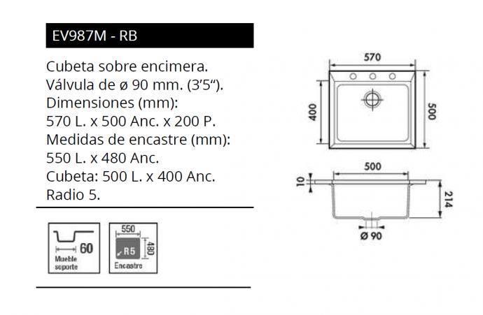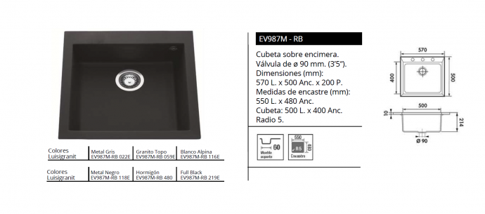 Dimensiones (mm): 570 Largo x 500 Ancho x 200 Profundo