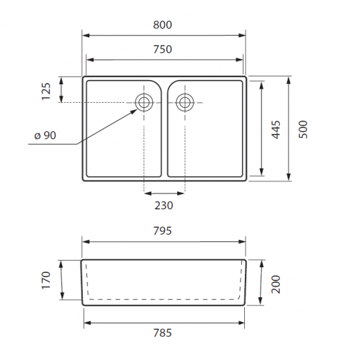Dimensiones del fregadero (mm):