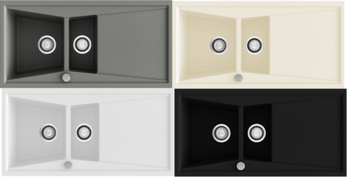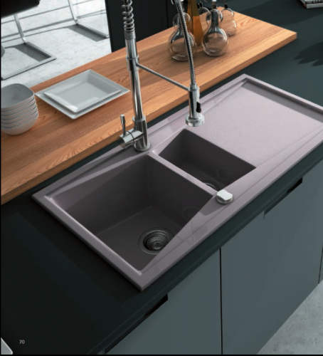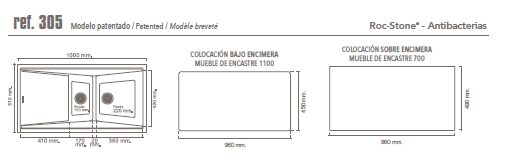 Estos fregaderos están fabricados en Roc.Stone con resinas y reforzados con cargas minerales naturales (cuarzos, sílices, alúminas), debido a estos materiales poseen propiedades antibacterias. además de facilitar la limpieza, ya que se puede usar productos anti calcáreos ,lejía,e incluso ácido Clorhídrico .