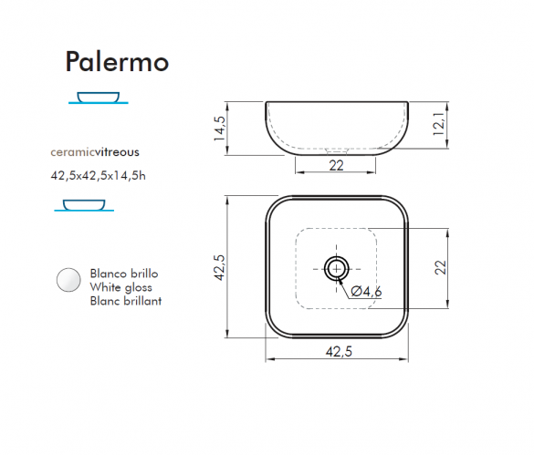 Lavabo sobre encimera Palermo de Porcelana Vitrea. Sanyces