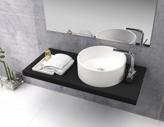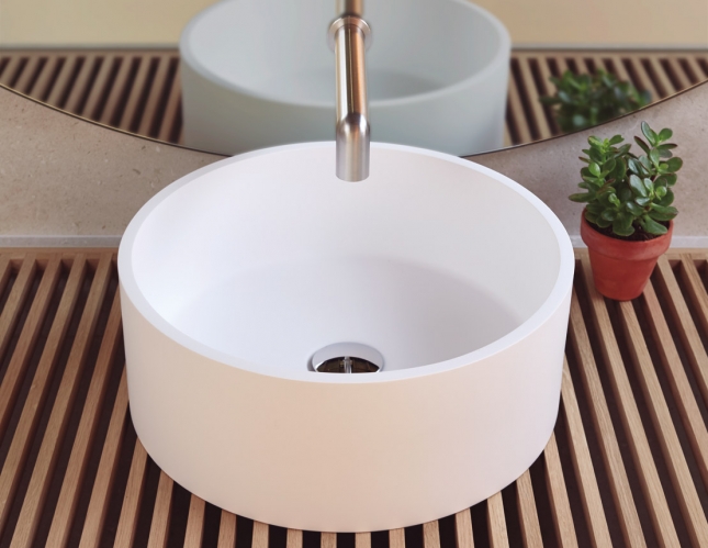 Lavabo sobre encimera de carga minera y gel coat modelo Lucena fabricado por Sanyces