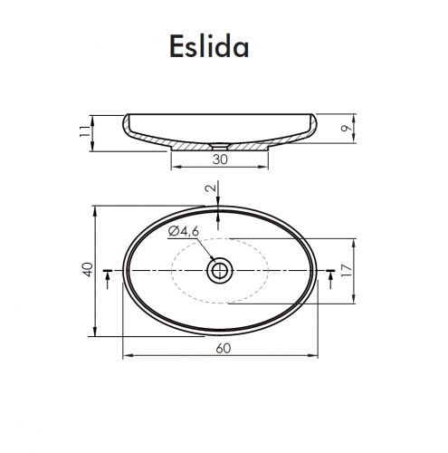 Lavabo sobre encimera de carga minera y gel coat modelo Eslida fabricado por Sanyces