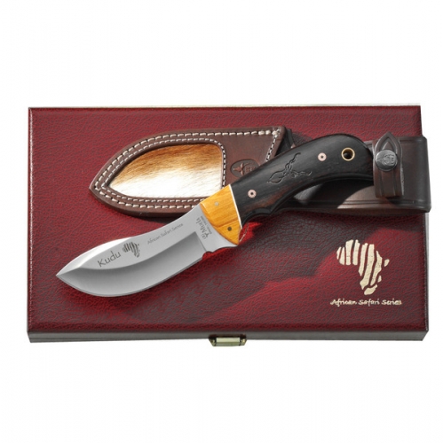 Finalmente, y como merece un cuchillo de estas excepcionales características, cada kudu se entrega en un lujoso estuche realizado expresamente para esta edición y acompañado de un folleto asimismo muy especial que muestra y comenta procesos de la gestación y producción del cuchillo y el “Certificado” que confirma su autenticidad y número de serie.