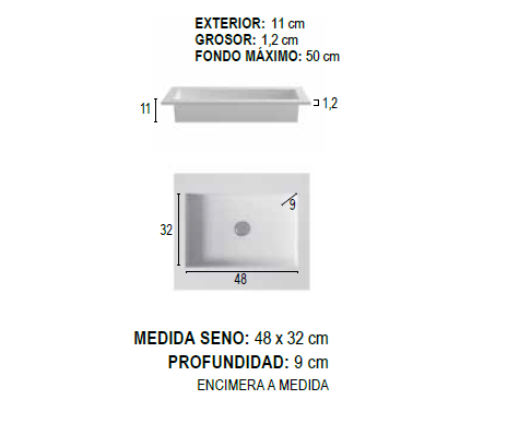 La cubeta tiene una medida de 48x32x9 cm, se puede hacer centrada, o desplazada, o con doble cubeta, la medida de la cubeta no se puede variar.