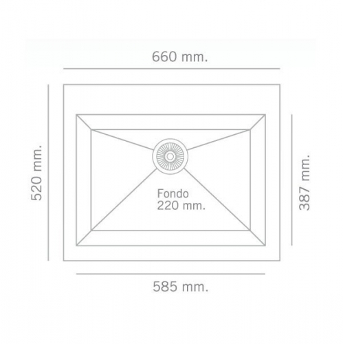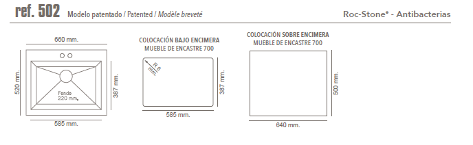 Medidas : 660 x 520x 220 mm., para mueble de 45cm para inslación sobre encimera o mueble de 70cm bajo encimera