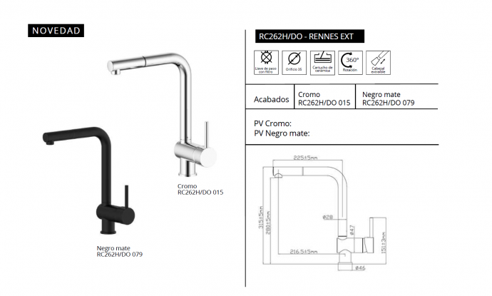 Grifo de cocina con monomando y caño extraíble, diseñado para ofrecer funcionalidad y comodidad.