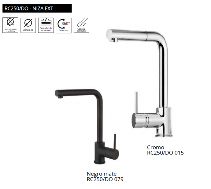 Grifo monomando con cabezal extraíble y caño giratorio. Caudal con la presión
